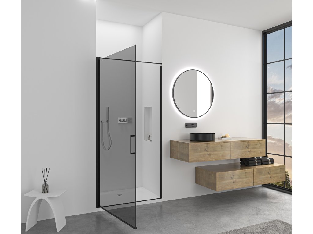 CERANO - Drzwi prysznicowe zawiasowe Porte L/R - 8 mm - matowa czerń, szkło grafitowe - 80x195 cm