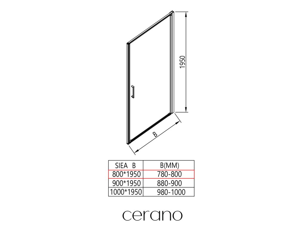 W ramach tej serii oferujemy szeroki wybór wymiarów, aby sprostać zróżnicowanym potrzebom naszych klientów. Wszystkie kabiny prysznicowe, drzwi i parawany CERANO są w pełni kompatybilne z brodzikami CERANO o tych samych wymiarach, co zapewnia bezproblemowy montaż i idealne dopasowanie. Ponadto kabinę można elastycznie zamontować – na pasującym brodziku lub bezpośrednio na podłodze, w zależności od preferencji i wyposażenia łazienki.