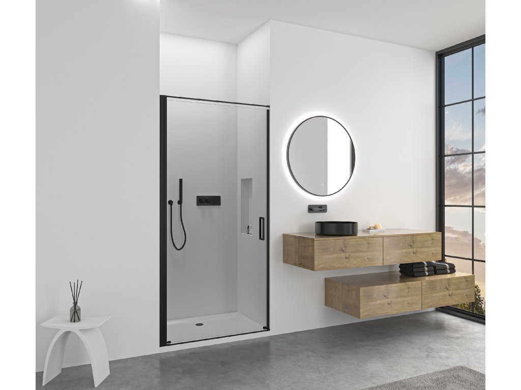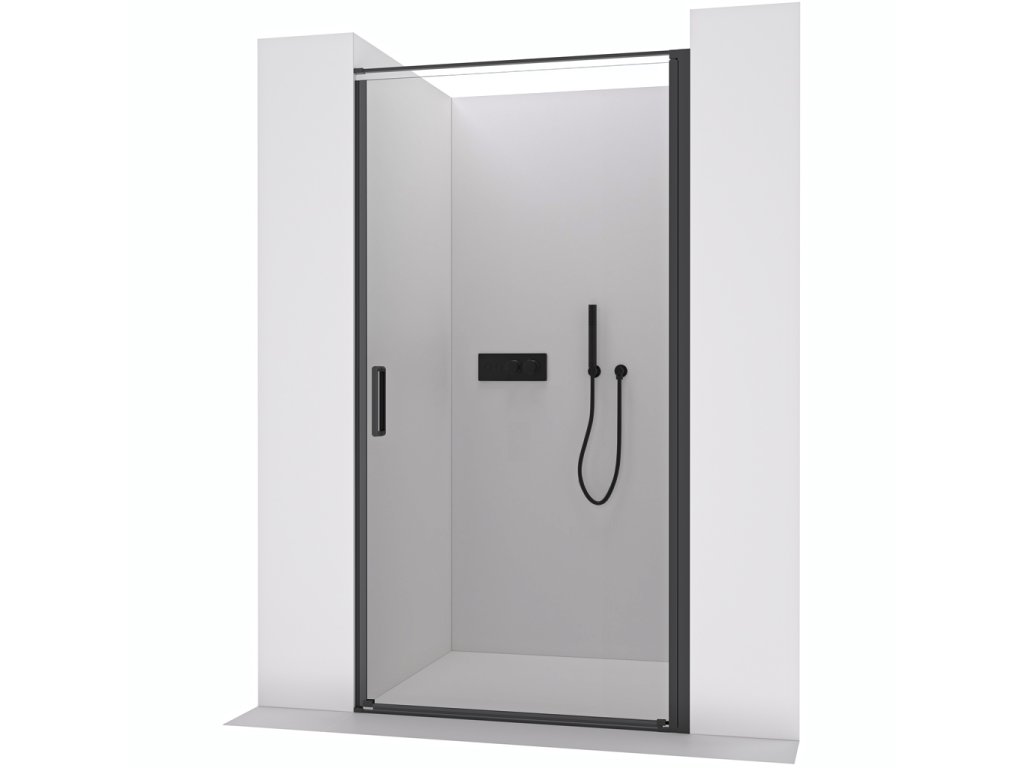 CERANO - Drzwi prysznicowe zawiasowe Porte L/R - 8 mm - matowa czerń, szkło transparentne - 80x195 cm