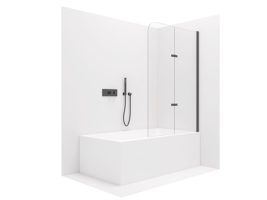 CERANO - Parawan nawannowy 2-skrzydłowy Vasca - matowa czerń, szkło transparentne - 120x140 cm