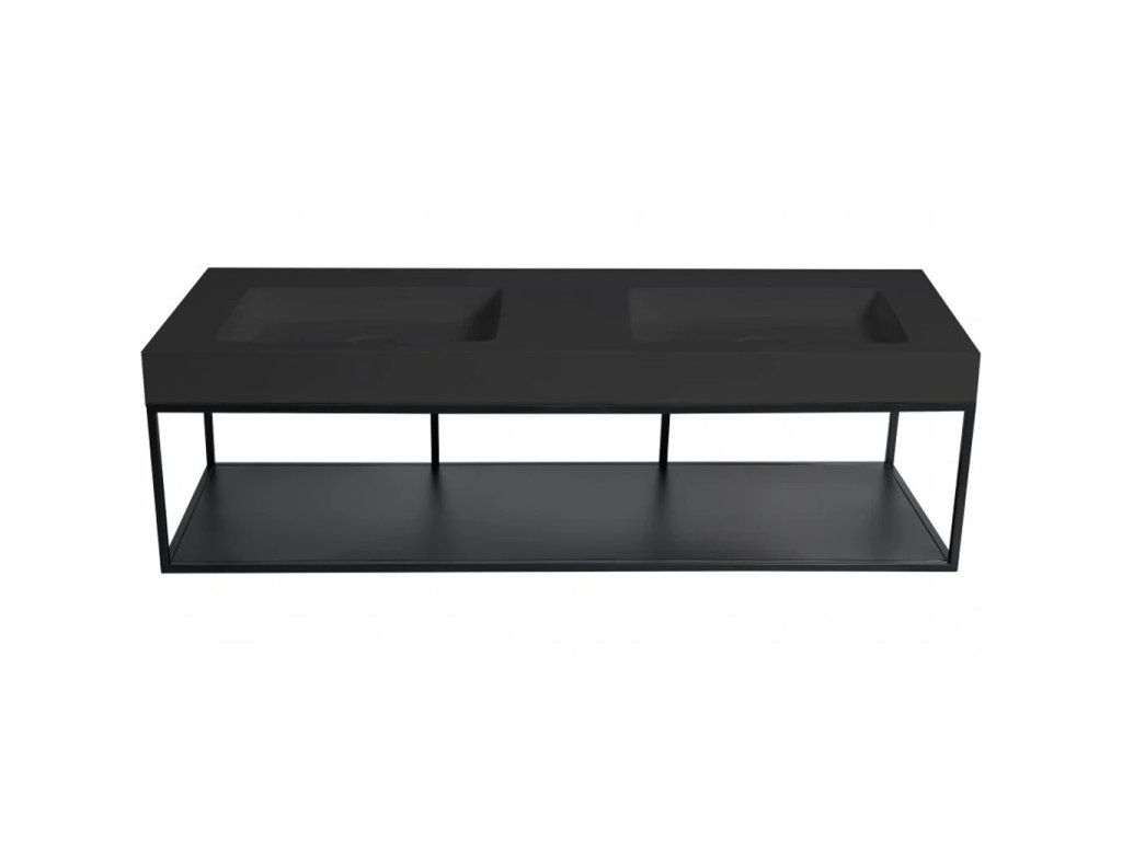 CERANO - Podwójna umywalka Dualia z odlewanego marmuru z uchwytem - ścienna - matowa czerń - 133x46x45 cm