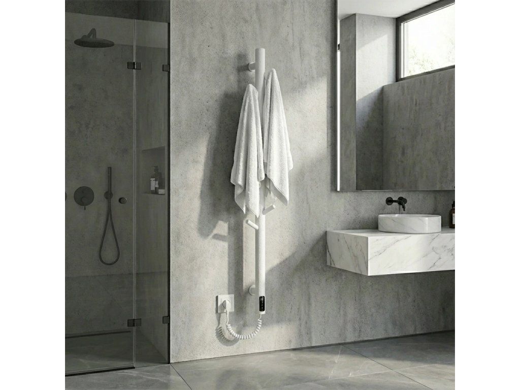 CERANO - Elektryczny podgrzewacz ręczników Ramus z wyświetlaczem - 160W - biały strukturalny perłowy - 1400x30 mm