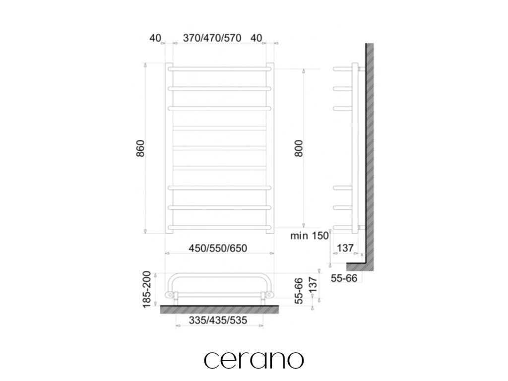 CERANO - Elektryczny podgrzewacz ręczników Ricardo z wyświetlaczem - 158 W - matowy czarny - 860x550 mm