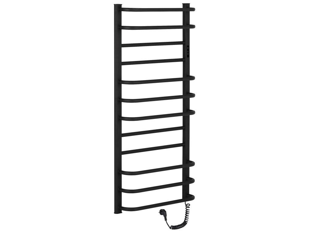 CERANO - Elektryczny podgrzewacz ręczników Ricardo z wyświetlaczem - 229 W - matowy czarny - 1160x550 mm