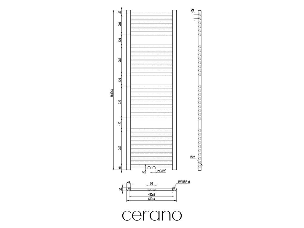 CERANO - Grzejnik łazienkowy Lincoln - podłączenie centralne 50mm/boczne - 484W - matowy czarny - 1600x500 mm