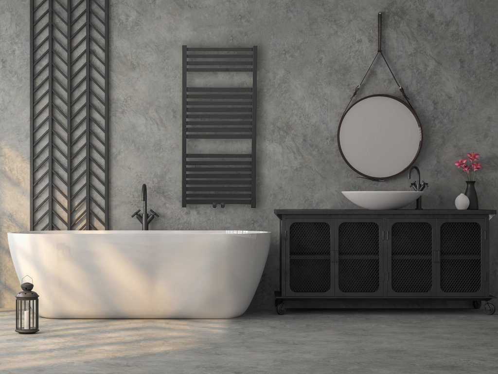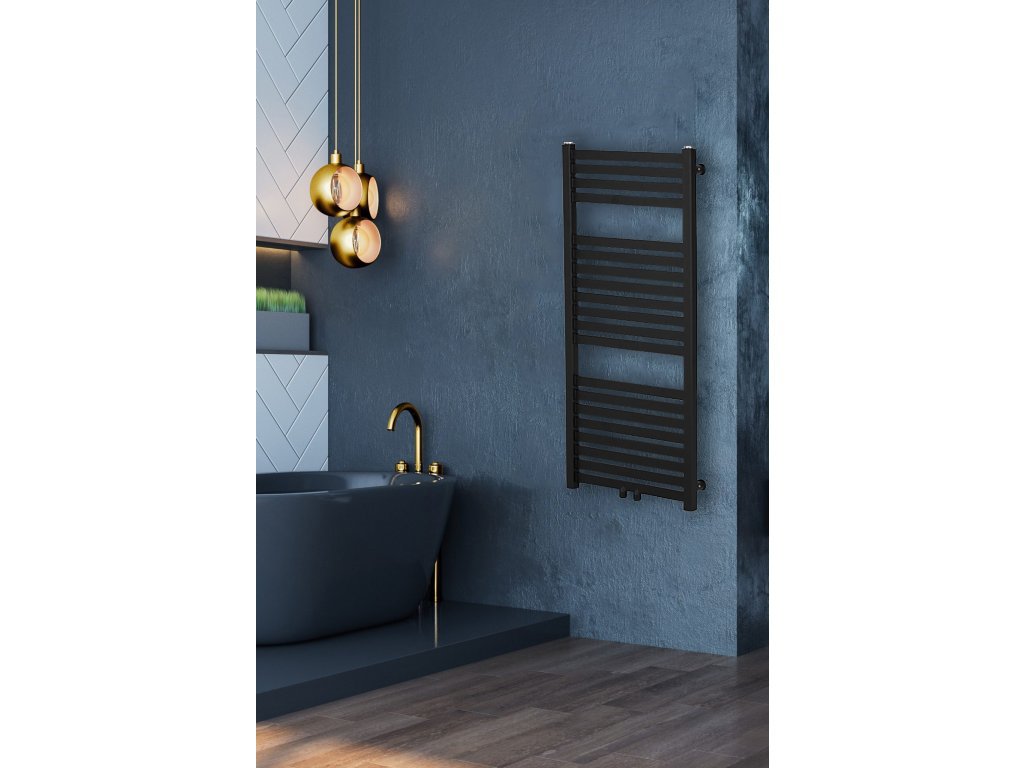 CERANO - Grzejnik łazienkowy Luigino - podłączenie centralne 50mm - 300W - matowy czarny - 970x450 mm