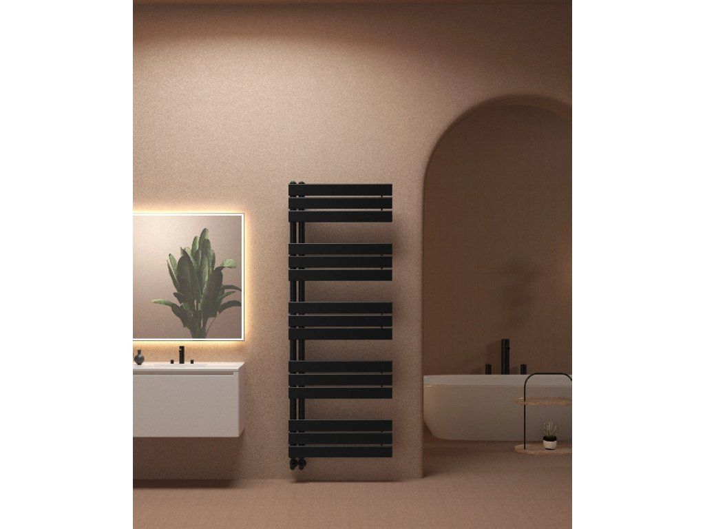 CERANO - Grzejnik łazienkowy Theo - L/P - asymetryczne podłączenie 50mm - 812W - czarny mat - 1600x500 mm