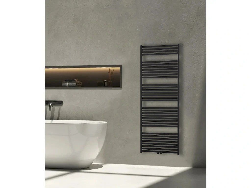 CERANO - Grzejnik łazienkowy Vincenzo - podłączenie centralne 50mm/boczne - 800W - matowy czarny - 1700x600 mm
