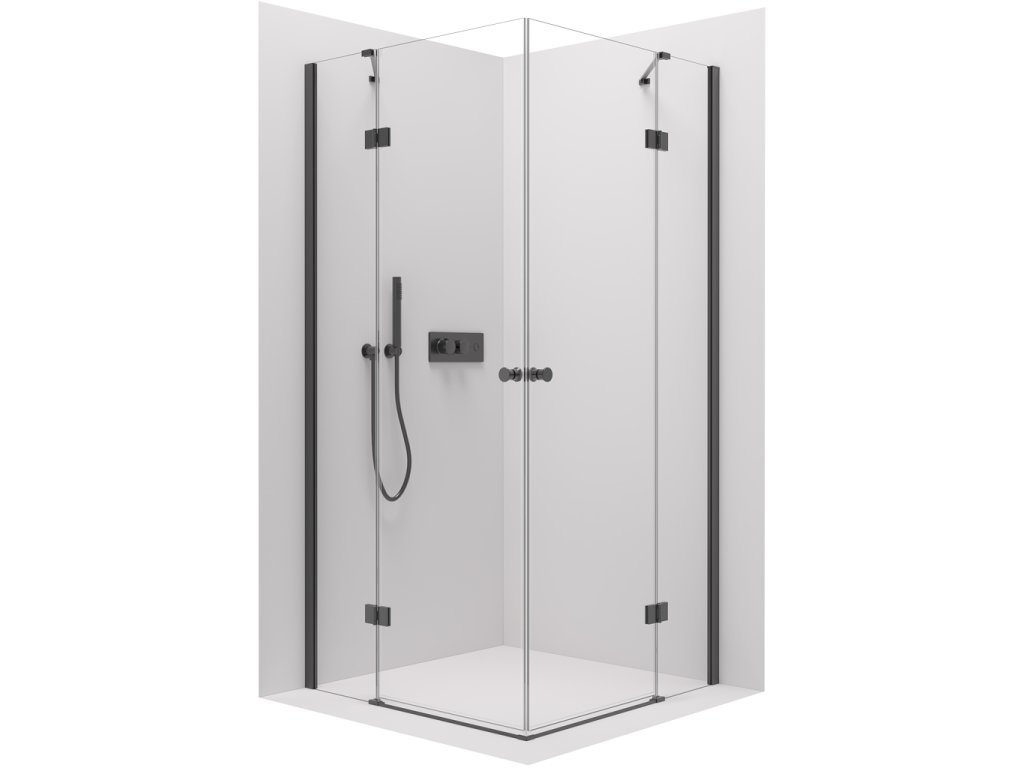 CERANO - Kabina prysznicowa Marino Duo L/R - 6 mm - matowa czerń, szkło transparentne - 120x120x190 cm - uchylna