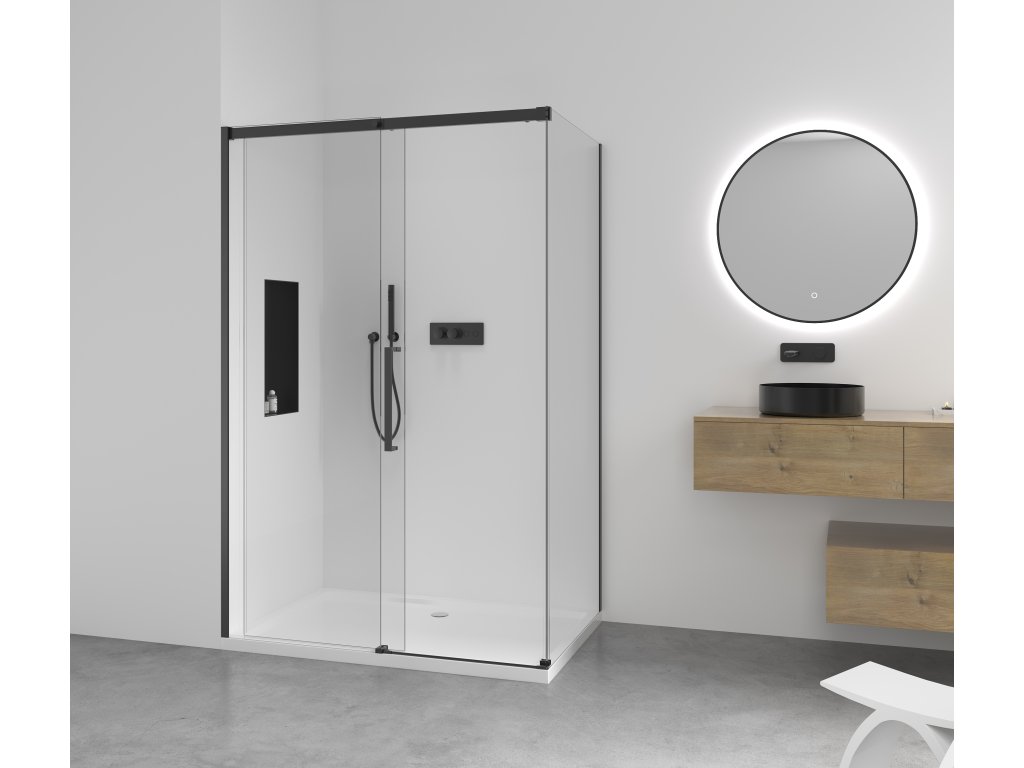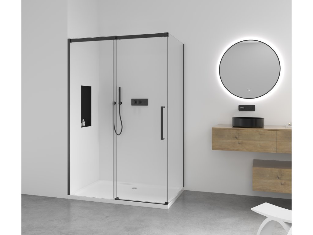 CERANO - Kabina prysznicowa Lantono L/P - 8 mm - Soft-Close - matowa czerń, szkło transparentne - 110x90x195 cm - przesuwna