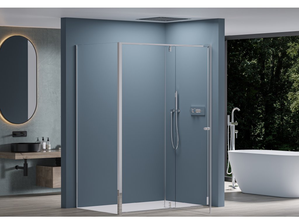 Drzwi prysznicowe są osadzone na zawiasach, a oś obrotu jest przesunięta od krawędzi drzwi na zewnątrz, co ułatwia ich otwieranie. To rozwiązanie wymaga miejsca na pełne otwarcie drzwi, co należy uwzględnić podczas planowania. Drzwi obrotowe są również dobrym wyborem do większych łazienek, ponieważ dzięki takiej konstrukcji można zastosować drzwi o większych rozmiarach.
