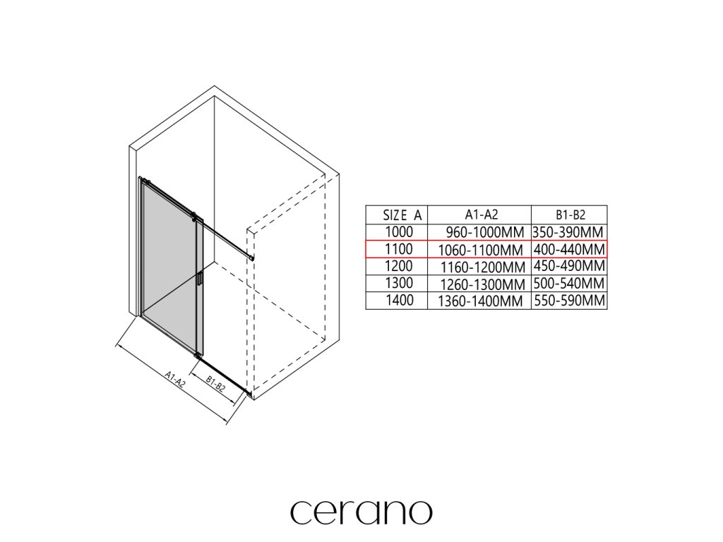 W ramach tej serii oferujemy szeroki wybór wymiarów, aby sprostać zróżnicowanym potrzebom naszych klientów. Wszystkie kabiny prysznicowe, drzwi i parawany CERANO są w pełni kompatybilne z brodzikami CERANO o tych samych wymiarach, co zapewnia bezproblemowy montaż i idealne dopasowanie. Ponadto kabinę można elastycznie zamontować – na pasującym brodziku lub bezpośrednio na podłodze, w zależności od preferencji i wyposażenia łazienki.
