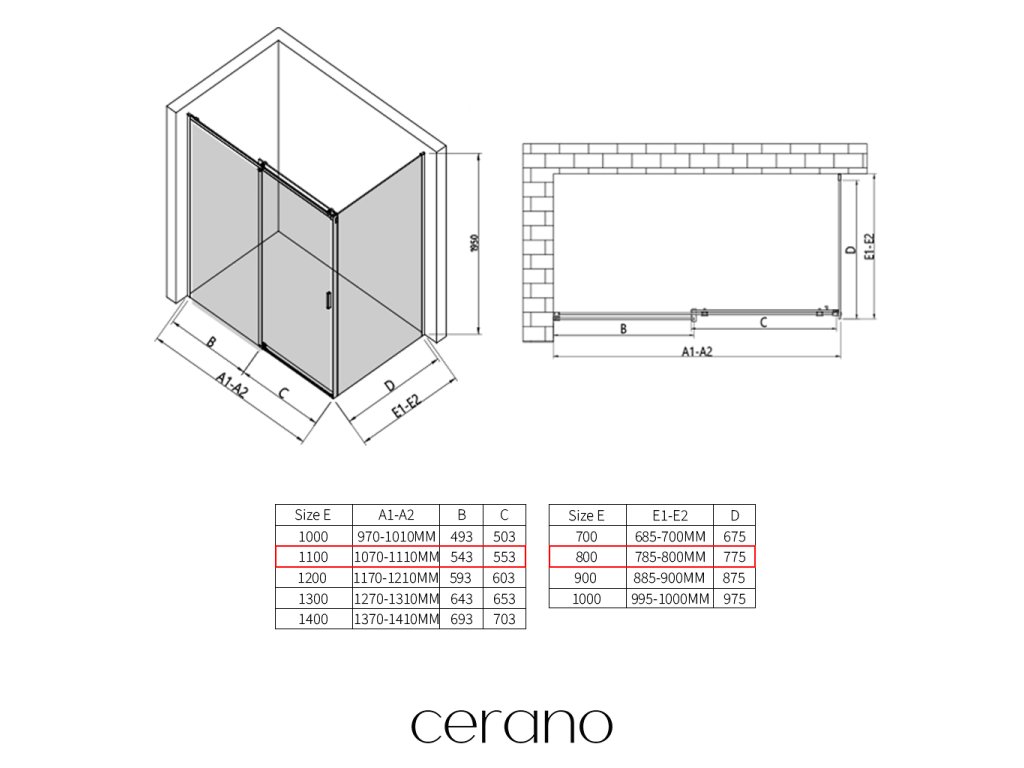 W ramach tej serii oferujemy szeroki wybór wymiarów, aby sprostać zróżnicowanym potrzebom naszych klientów. Wszystkie kabiny prysznicowe, drzwi i parawany CERANO są w pełni kompatybilne z brodzikami CERANO o tych samych wymiarach, co zapewnia bezproblemowy montaż i idealne dopasowanie. Ponadto kabinę można elastycznie zamontować – na pasującym brodziku lub bezpośrednio na podłodze, w zależności od preferencji i wyposażenia łazienki.