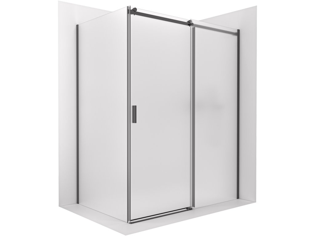 CERANO - Kabina prysznicowa Santoro - prawa - 6 mm - matowa czarna, szkło mrożone - 110x80 cm - przesuwna