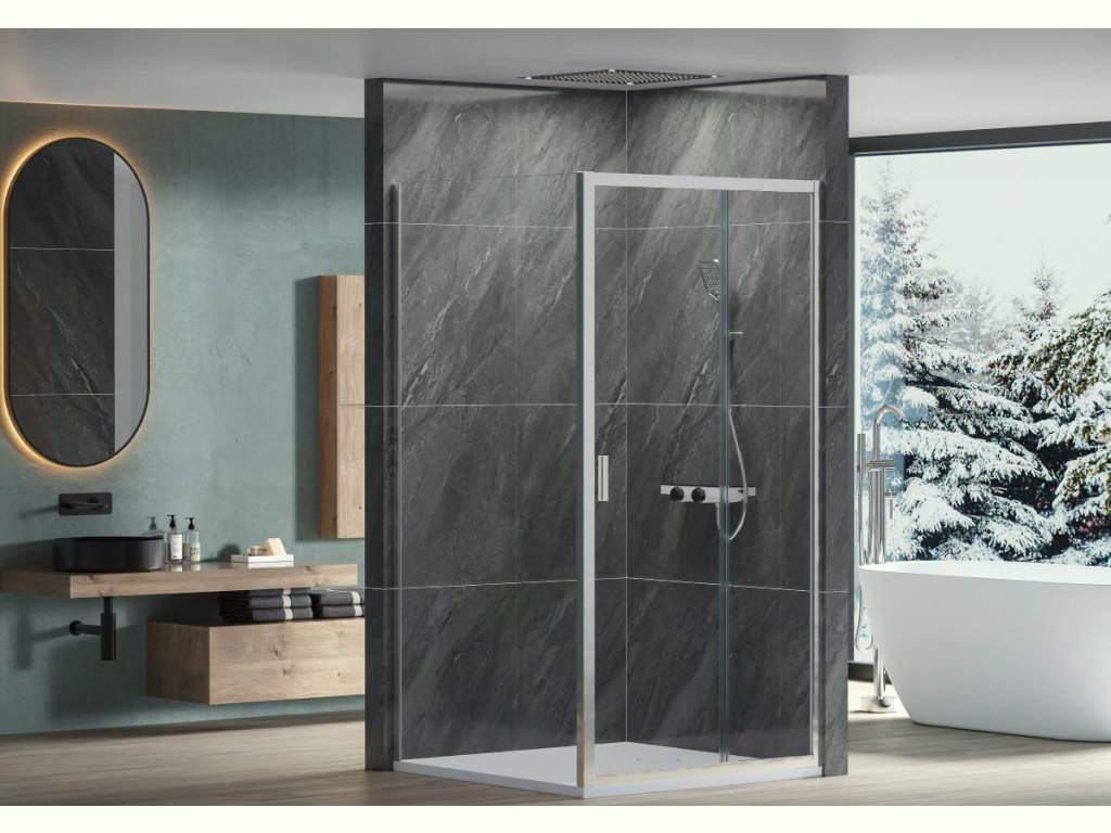 CERANO - Kabina prysznicowa Varone LINE L/R - 6 mm - chrom, szkło transparentne - 110x80x195 cm - przesuwna