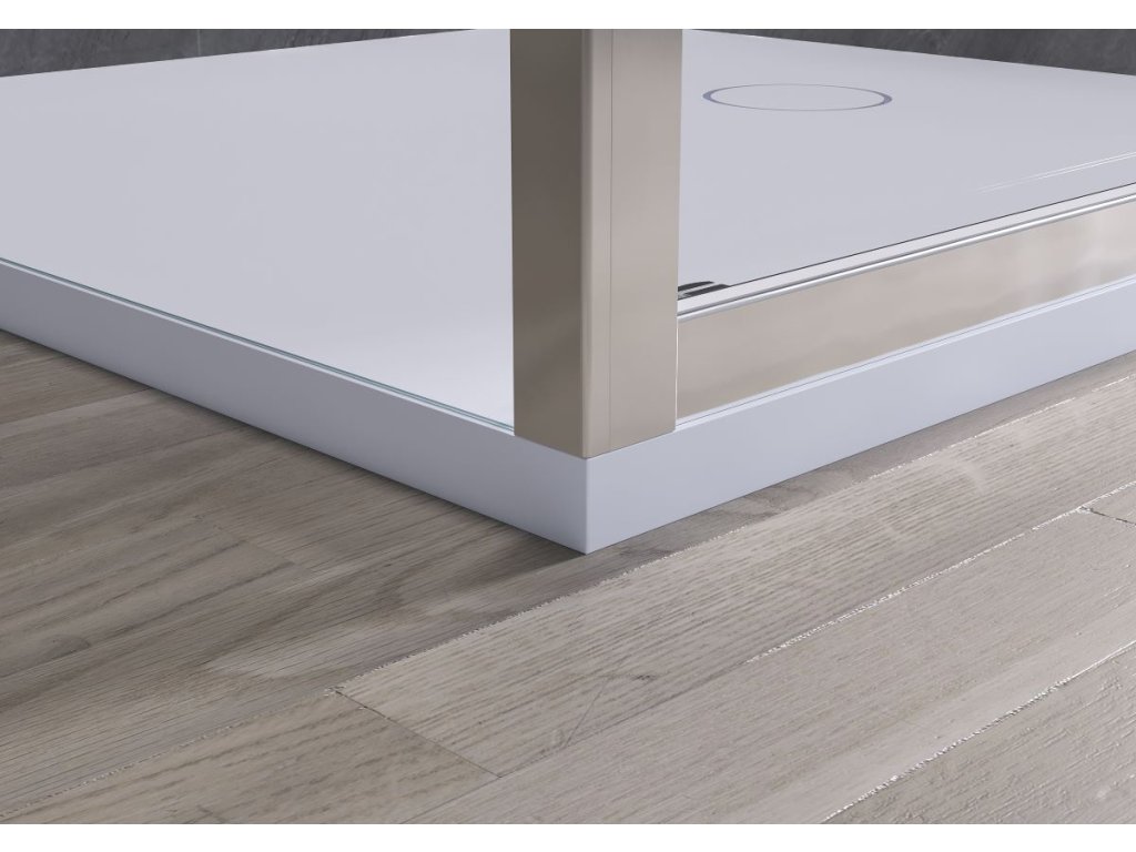 Próg uszczelniający, wykonany z wytrzymałego aluminium, skutecznie zapobiega wypływaniu wody z kabiny prysznicowej, chroniąc tym samym łazienkę przed ewentualnym zalaniem. Dodatkowo próg jest odporny na korozję i uszkodzenia mechaniczne, co gwarantuje jego długotrwałą funkcjonalność i estetyczny wygląd.