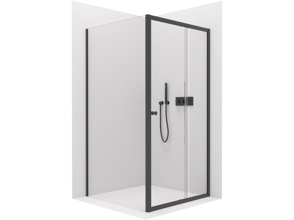 CERANO - Kabina prysznicowa Varone POINT L/R - 6 mm - matowa czarna, szkło transparentne - 110x70x195 cm - przesuwna