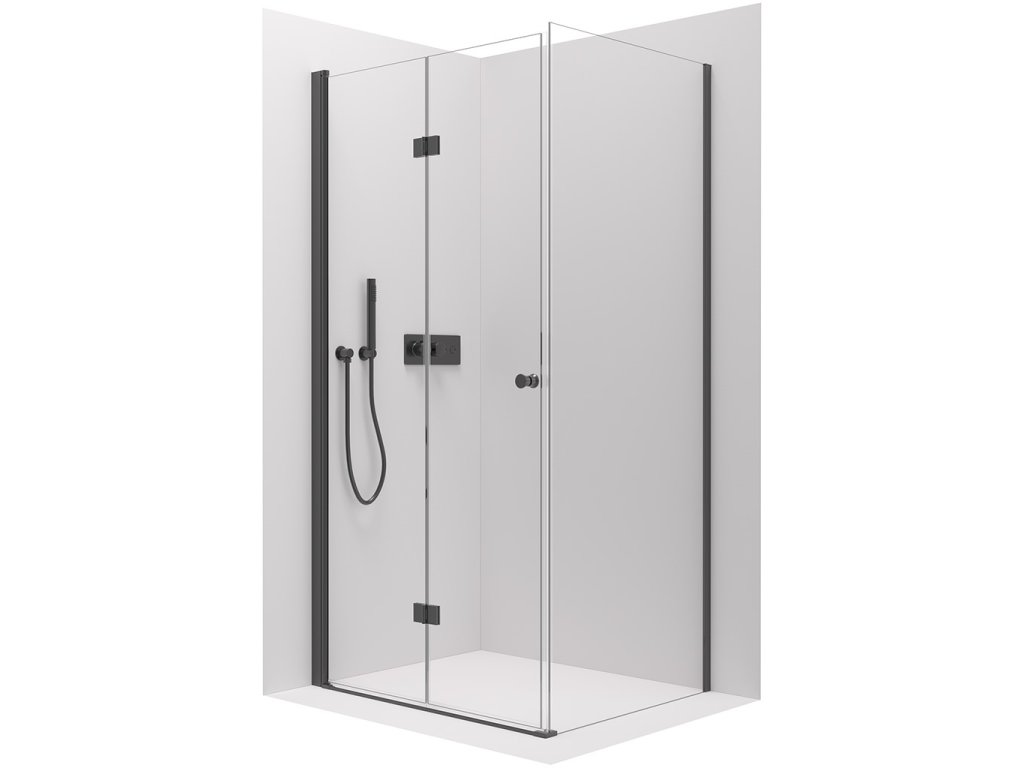 CERANO - Kabina prysznicowa Volpe L/R - 6 mm - matowa czerń, szkło transparentne - 110x70x190 cm - składana