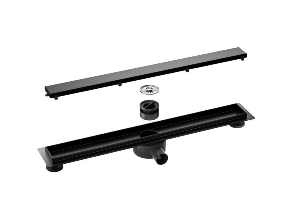 CERANO - Odpływ prysznicowy, syfon obrotowy 360° - konstrukcja 2 w 1 - stal nierdzewna - DN40 - matowy czarny - 64 cm