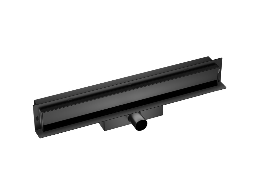 CERANO - Odpływ prysznicowy do ściany, syfon - stal nierdzewna - DN40 - mat czarny - 104 cm