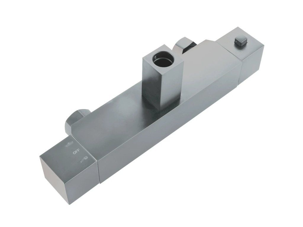Bateria termostatyczna zawiera głowicę z elementem grzejnym, najczęściej woskowym lub bimetalicznym, który automatycznie reguluje stosunek wody ciepłej do zimnej i utrzymuje zadaną temperaturę 38°C. Wyższą temperaturę można ustawić, naciskając blokadę bezpieczeństwa STOP i obracając uchwyt od siebie. Przepływ wody jest regulowany za pomocą drugiego uchwytu.