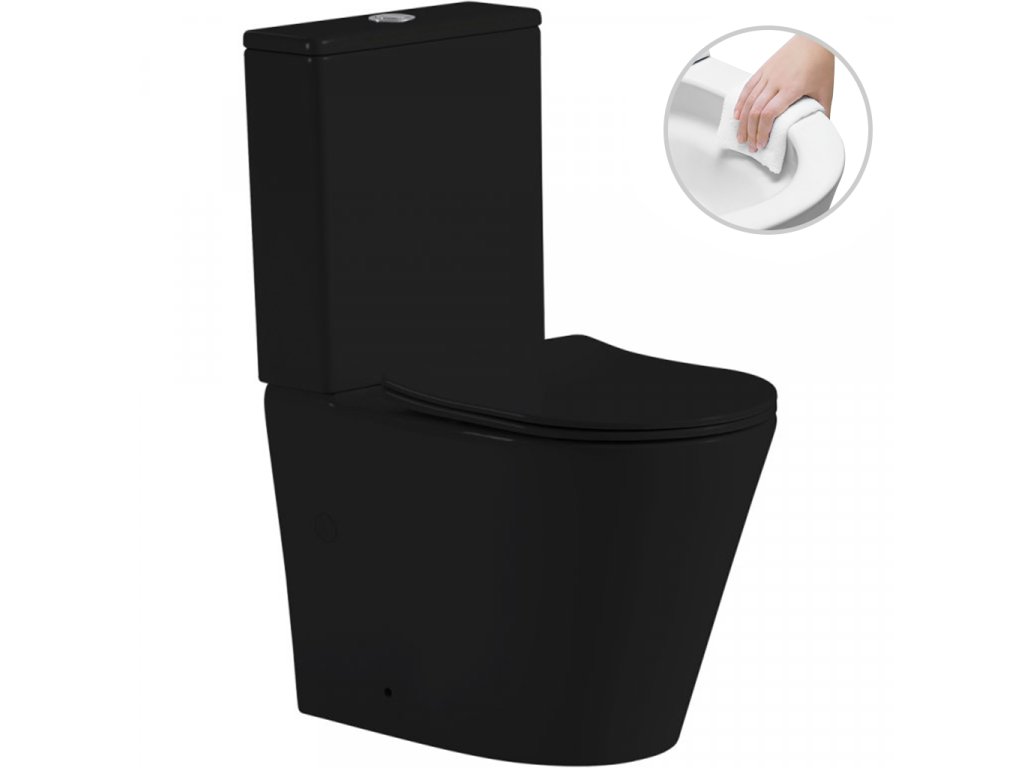 CERANO - Zestaw WC Carlito, Rimless + Deska Slim/UF - odpływ dolny/tylny - czarny mat - 61x36,5 cm