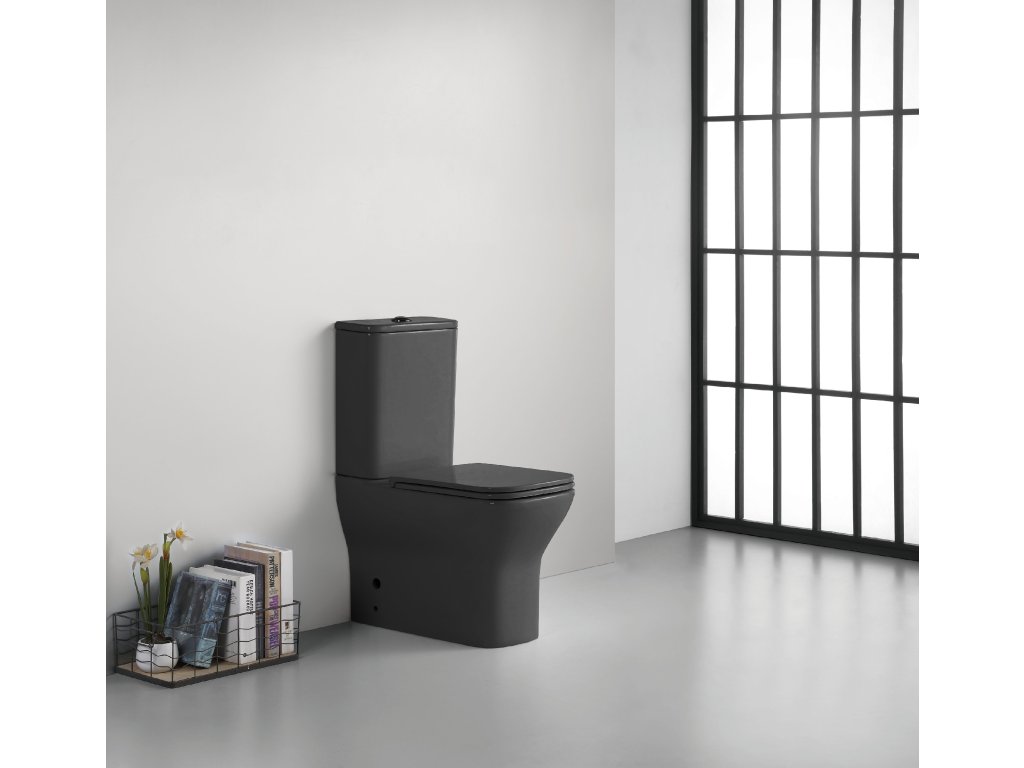 CERANO - Zestaw WC Hugo, Rimless + Deska Slim/UF - odpływ dolny/tylny - czarny mat - 63,5 x 35,5 cm