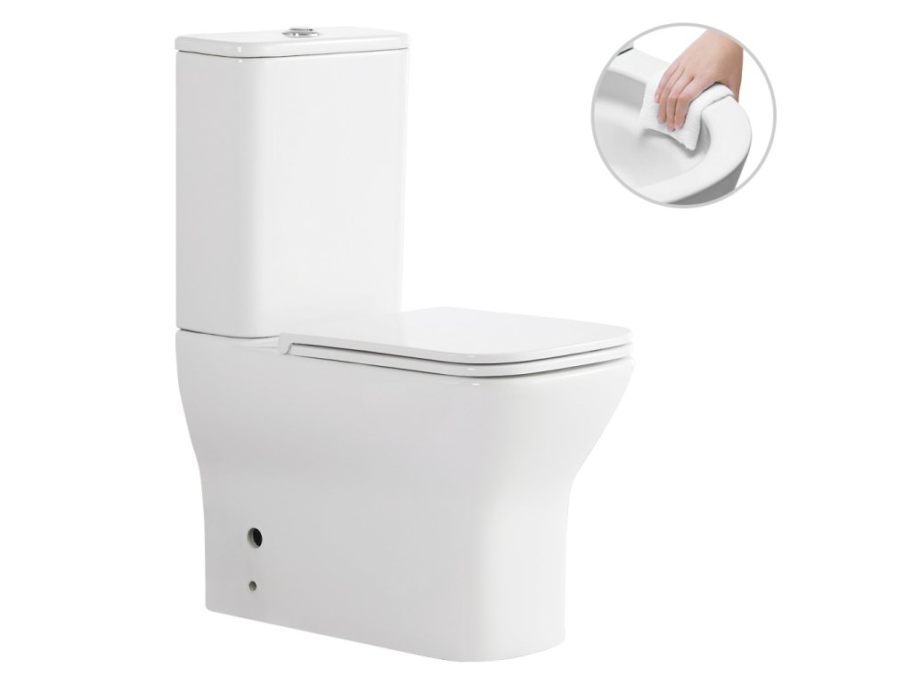 Ten innowacyjny, bezrantowy system spłukiwania to rozwiązanie konstrukcyjne dla ceramicznej miski ustępowej, które całkowicie eliminuje tradycyjny brzeg spłuczki. To radykalnie zmienia przepływ wody, konserwację i właściwości higieniczne toalety.