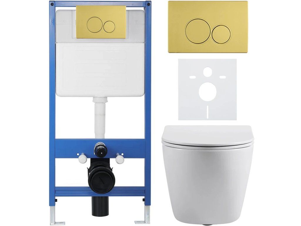 CERANO - Kompletny zestaw WC podtynkowy Lite/Cesso - biały połysk - Przycisk WC Duo. złoty - montaż podtynkowy - 49x36 cm