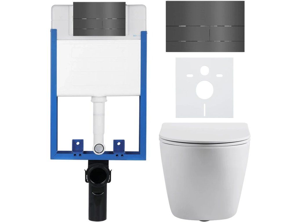 CERANO - Kompletny zestaw WC podtynkowy Lite/Cesso - matowa biel - Przycisk WC Line - ciemnoszary - do montażu na ścianie - 49x36 cm