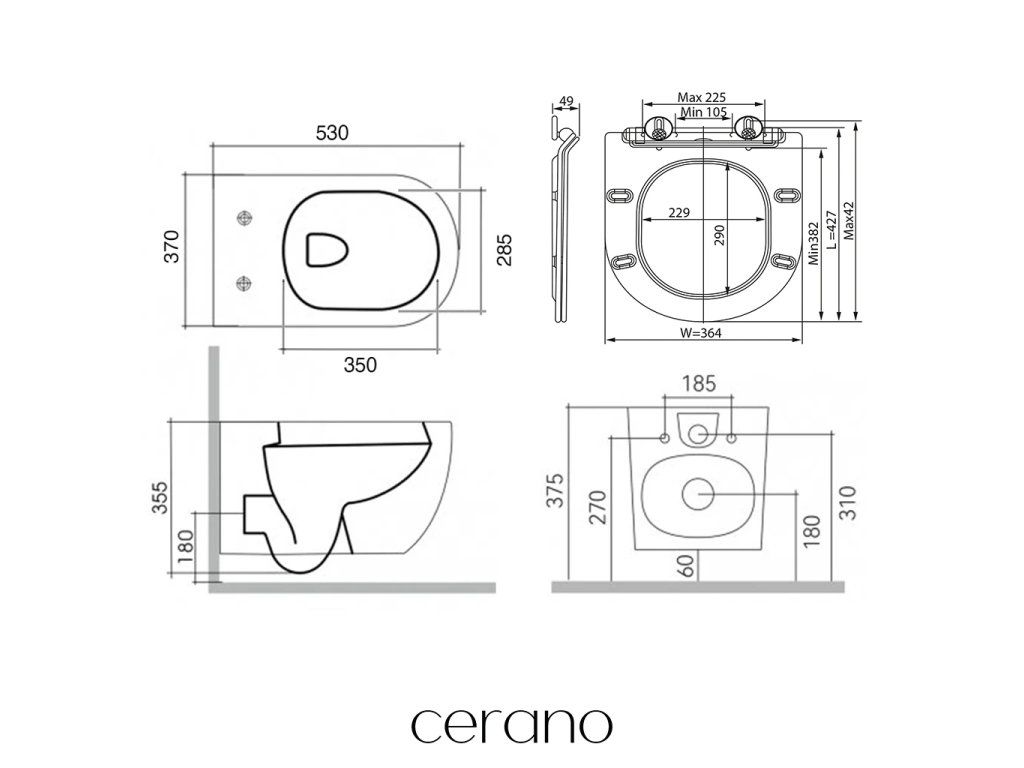 Podwieszane toalety Cerano są łatwe w montażu i, dzięki standardowym rozstawom montażowym, kompatybilne z modułami Cerano, a także innymi markami, takimi jak Geberit, Grohe, Alcadrain, Jika, Tece itp.