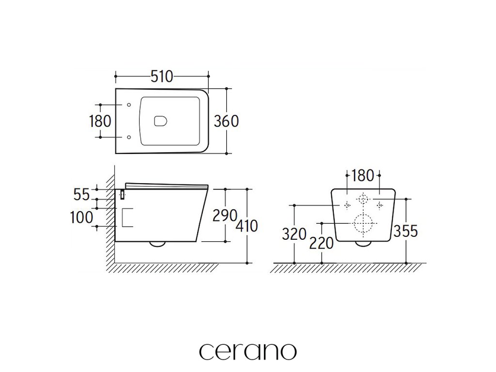 Podwieszane toalety Cerano są łatwe w montażu i, dzięki standardowym rozstawom montażowym, kompatybilne z modułami Cerano, a także innymi markami, takimi jak Geberit, Grohe, Alcadrain, Jika, Tece itp.