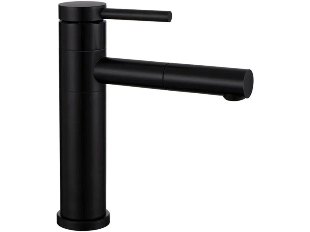 CERANO - Zestaw WC z umywalką Hygisink, bezkołnierzową + deską UF - odpływ dolny/tylny - połysk biały + bateria Tiziana niska - matowa czerń - 71,5 x 36 cm