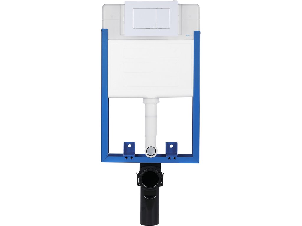 - Spłuczka zabudowana z fabrycznie zamontowanym zaworem odcinającym i napełniającym.