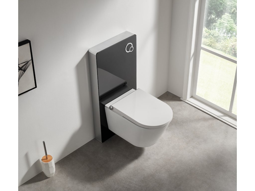 - Po zamontowaniu modułu i zabudowie płytą gipsowo-kartonową wszystkie elementy techniczne pozostają ukryte, co nadaje łazience schludny i nowoczesny wygląd. Ułatwia to również konserwację i czyszczenie pod toaletą.