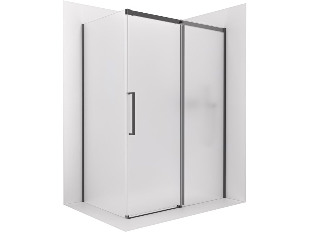 CERANO - Kabina prysznicowa Lantono - prawa - 8 mm - Soft-Close - matowa czerń, szkło mrożone - 100x100 cm - przesuwna