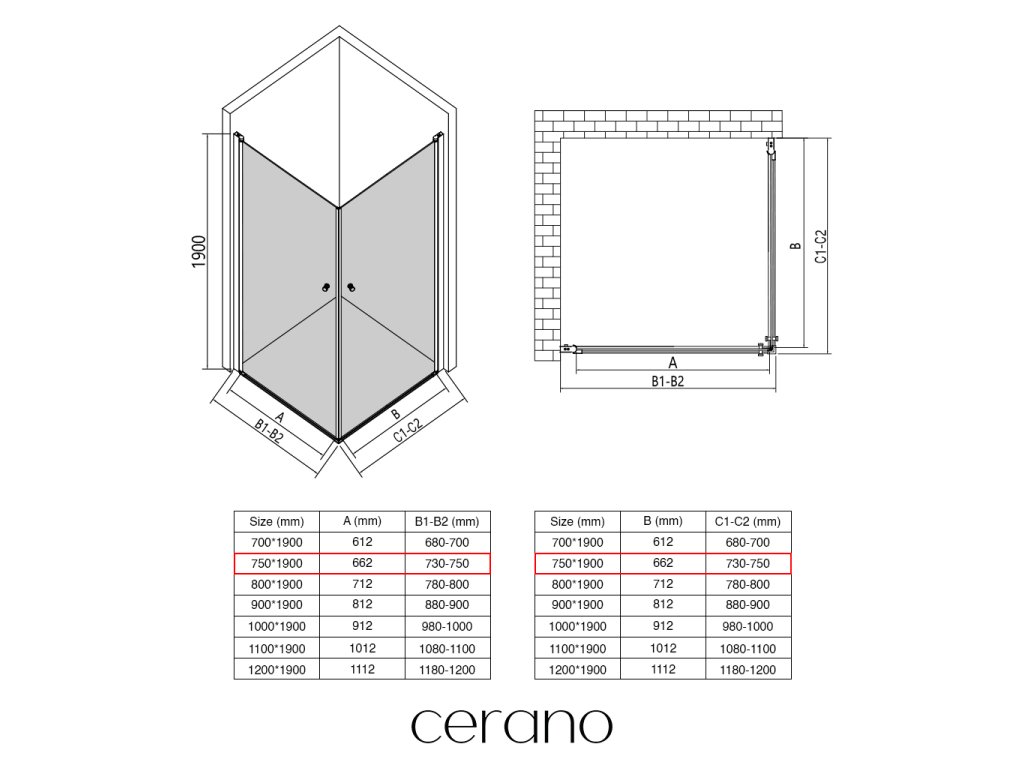 W ramach tej serii oferujemy szeroki wybór wymiarów, aby sprostać zróżnicowanym potrzebom naszych klientów. Wszystkie kabiny prysznicowe, drzwi i parawany CERANO są w pełni kompatybilne z brodzikami CERANO o tych samych wymiarach, co zapewnia bezproblemowy montaż i idealną koordynację.