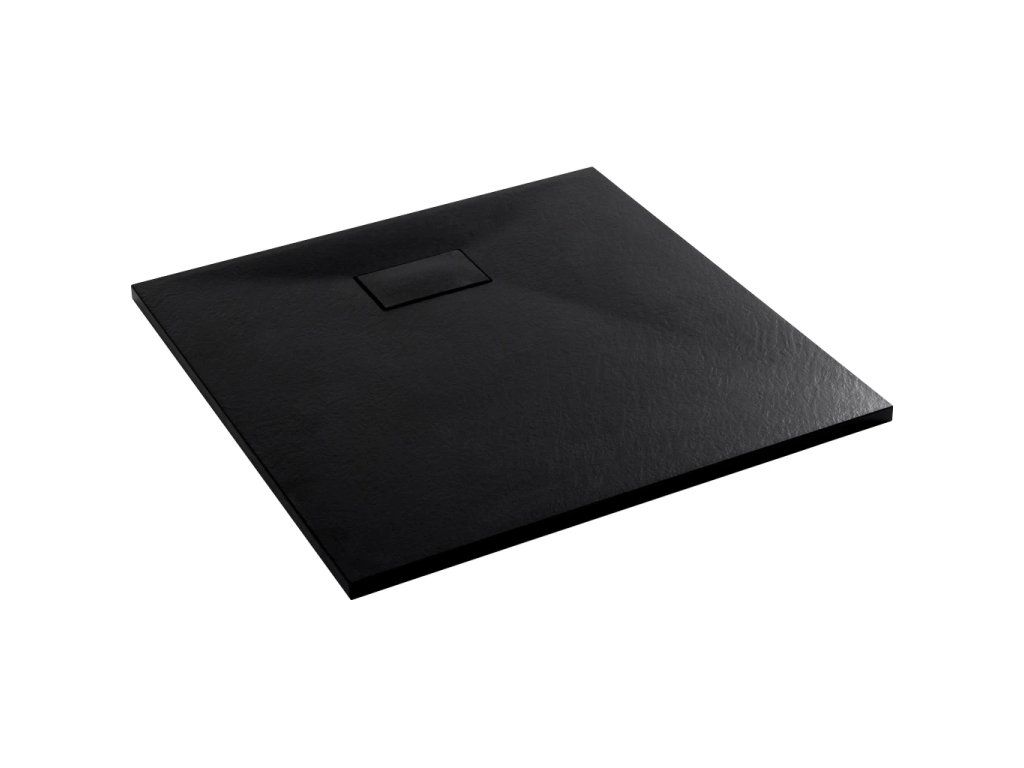 CERANO - Brodzik kwadratowy Gusto - SMC/kompozyt mineralny - strukturalny czarny mat - 80x80x3 cm