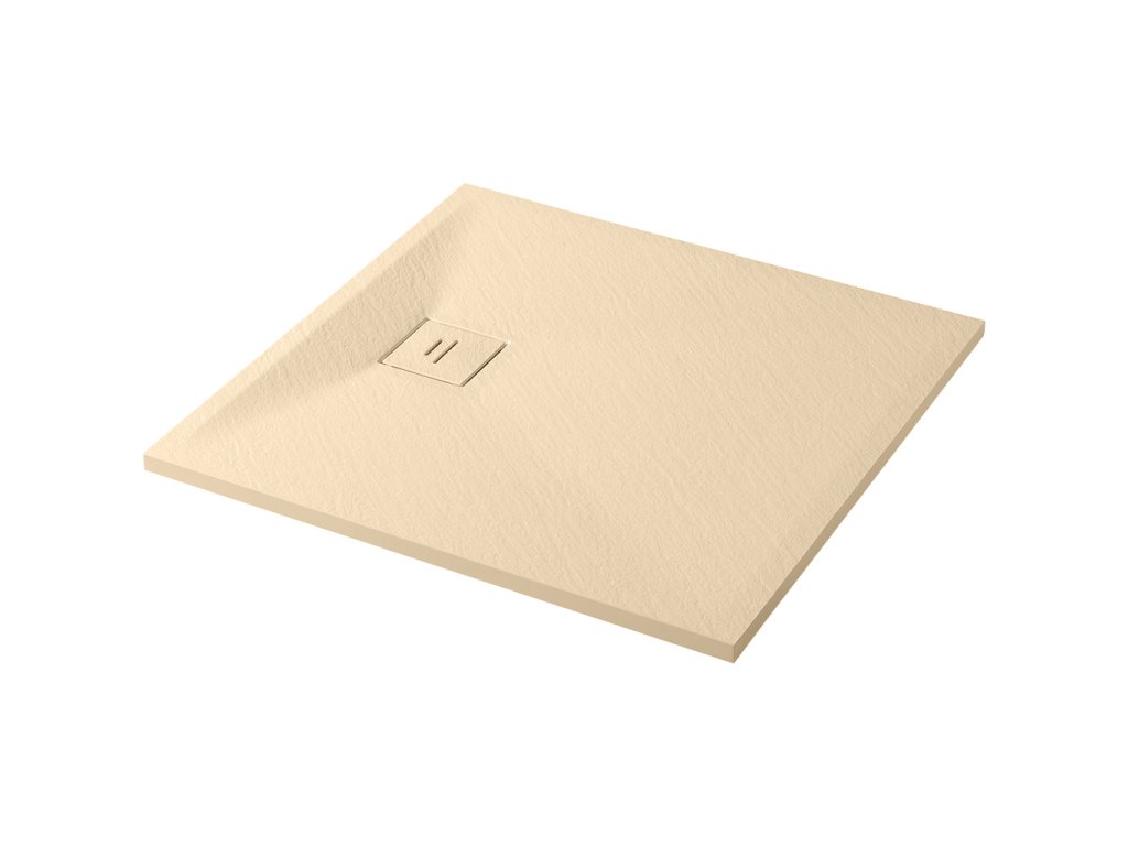 CERANO - Brodzik kwadratowy Pablo - SMC/kompozyt mineralny - struktura kości słoniowej - 80x80x3 cm