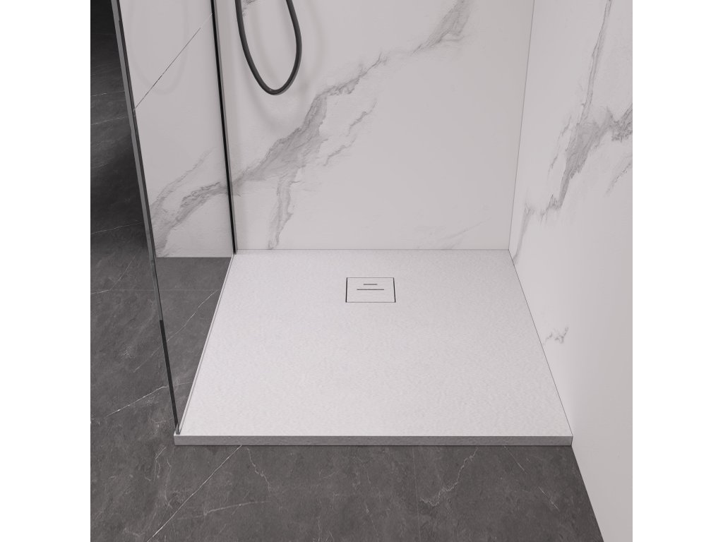 CERANO - Brodzik kwadratowy Pablo - SMC/kompozyt mineralny - strukturalny biały mat - 80x80 cm