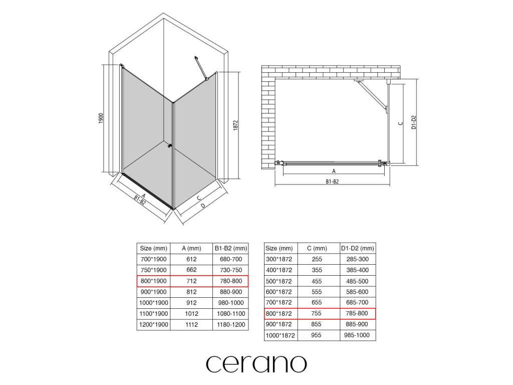 W ramach tej serii oferujemy szeroki wybór wymiarów, aby sprostać zróżnicowanym potrzebom naszych klientów. Wszystkie kabiny prysznicowe, drzwi i parawany CERANO są w pełni kompatybilne z brodzikami CERANO o tych samych wymiarach, co zapewnia bezproblemowy montaż i idealną koordynację.