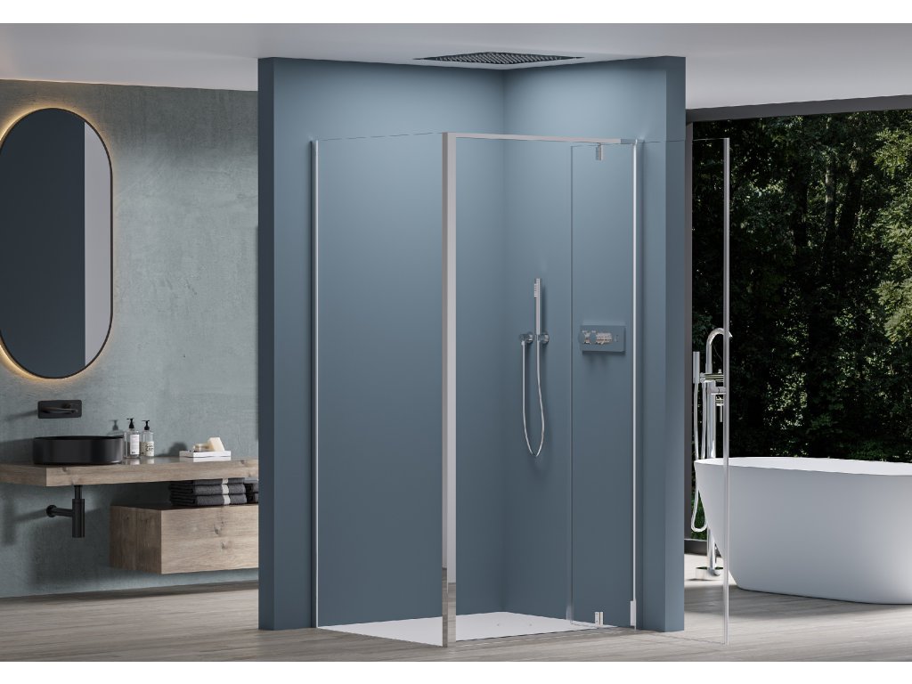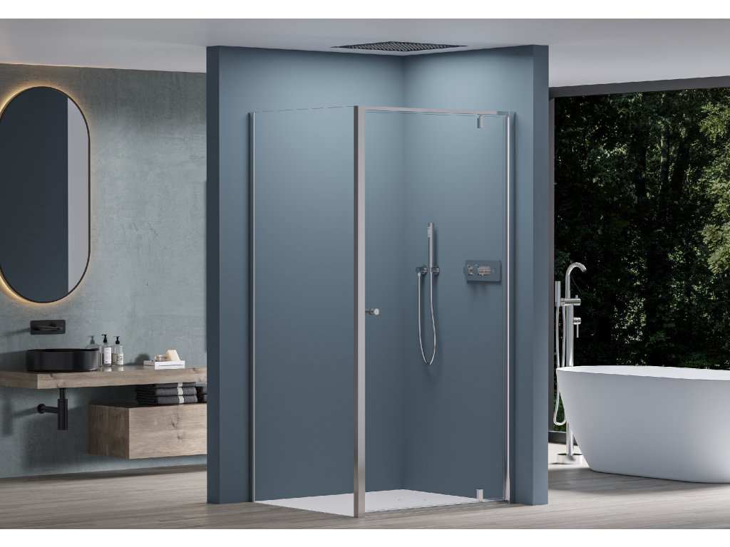 Drzwi prysznicowe są osadzone na zawiasach, a oś obrotu jest przesunięta od krawędzi drzwi na zewnątrz, co ułatwia ich otwieranie. To rozwiązanie wymaga miejsca na pełne otwarcie drzwi, co należy uwzględnić podczas planowania. Drzwi obrotowe są również dobrym wyborem do większych łazienek, ponieważ dzięki takiej konstrukcji można zastosować drzwi o większych rozmiarach.