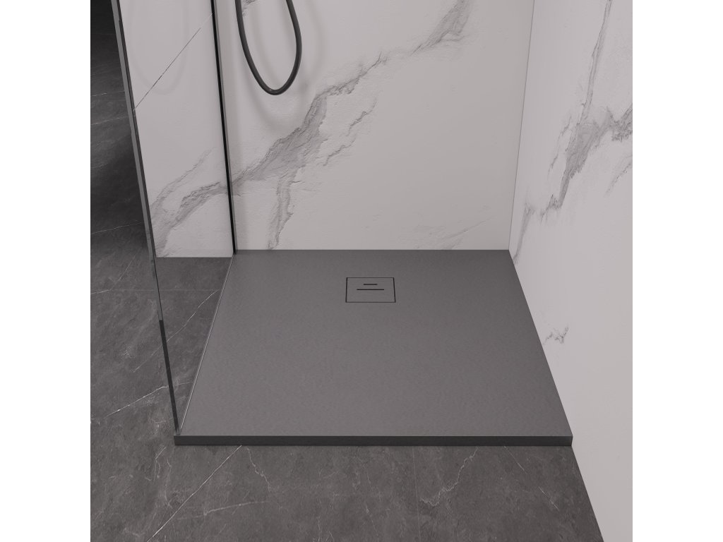 CERANO - Brodzik kwadratowy Pablo - SMC/kompozyt mineralny - strukturalny szary - 90x90 cm