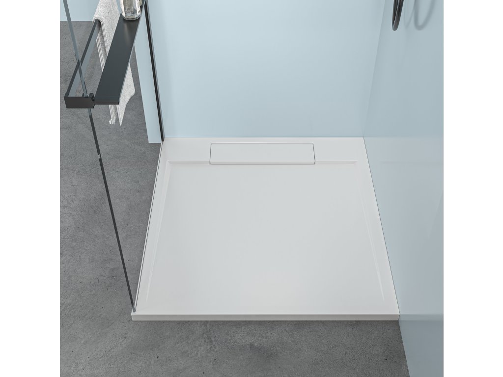 CERANO - Brodzik kwadratowy z marmuru odlewanego Loro - biały mat - 90x90 cm
