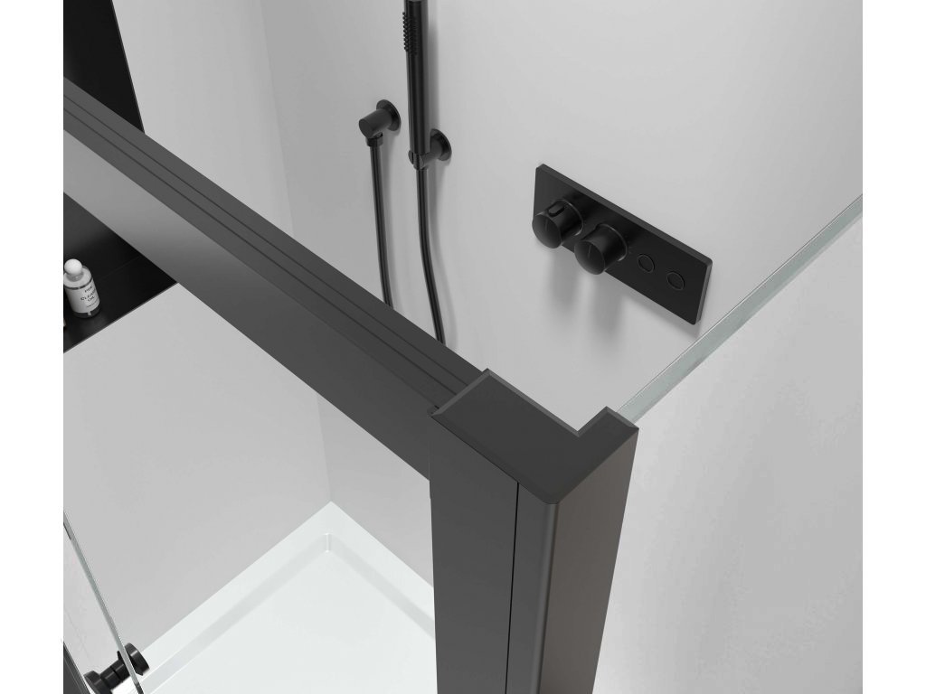 CERANO - Kabina prysznicowa Varone POINT L/R - 6 mm - matowa czarna, szkło transparentne - 90x90x195 cm - przesuwna