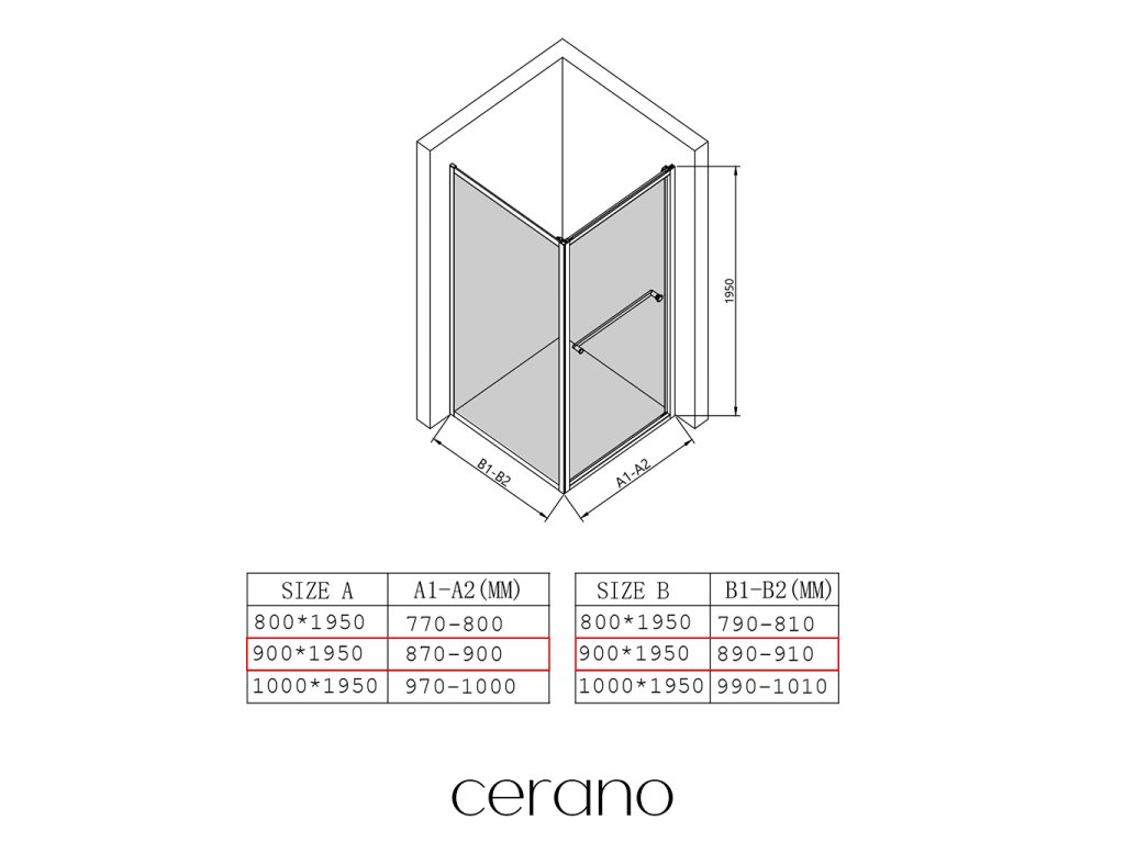 W ramach tej serii oferujemy szeroki wybór wymiarów, aby sprostać zróżnicowanym potrzebom naszych klientów. Wszystkie kabiny prysznicowe, drzwi i parawany CERANO są w pełni kompatybilne z brodzikami CERANO o tych samych wymiarach, co zapewnia bezproblemowy montaż i idealne dopasowanie. Ponadto kabinę można elastycznie zamontować – na pasującym brodziku lub bezpośrednio na podłodze, w zależności od preferencji i wyposażenia łazienki.