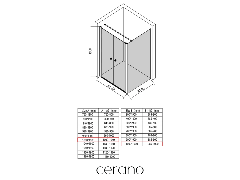 W ramach tej serii oferujemy szeroki wybór wymiarów, aby sprostać zróżnicowanym potrzebom naszych klientów. Wszystkie kabiny prysznicowe, drzwi i parawany CERANO są w pełni kompatybilne z brodzikami CERANO o tych samych wymiarach, co zapewnia bezproblemowy montaż i idealną koordynację.