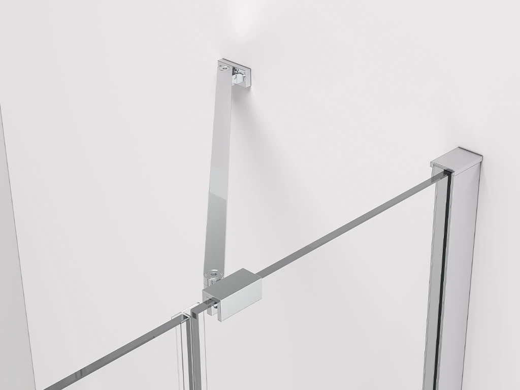 Profil ścienny, regulowany do 30 mm, jest kluczowym elementem podczas montażu kabiny prysznicowej. System ten pozwala na precyzyjne dopasowanie kabiny do wymiarów przestrzeni prysznicowej, kompensując jednocześnie krzywizny i nierówności ścian.