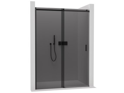 CERANO - Drzwi prysznicowe przesuwne Santoro L/P - 8 mm - matowa czerń, szkło grafitowe - 150x195 cm