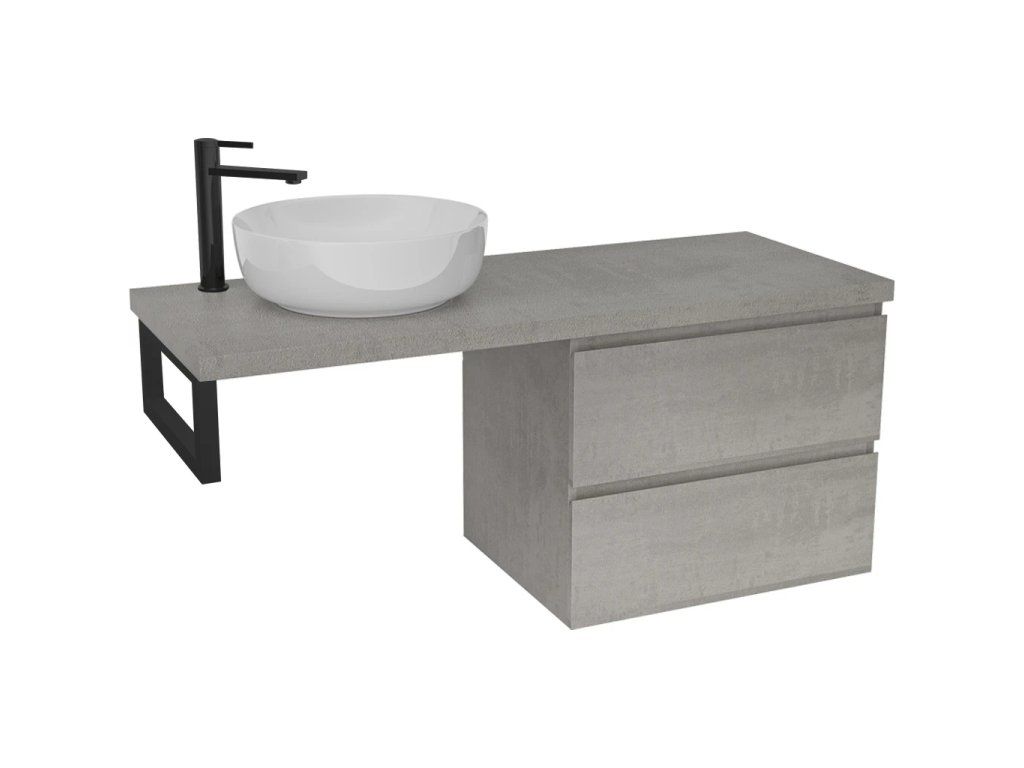CERANO - Blat umywalkowy Navira Pro - 141x46,5x3,6 cm - Szafka Carole 69 cm - Betonowo-szary - Konsola czarna